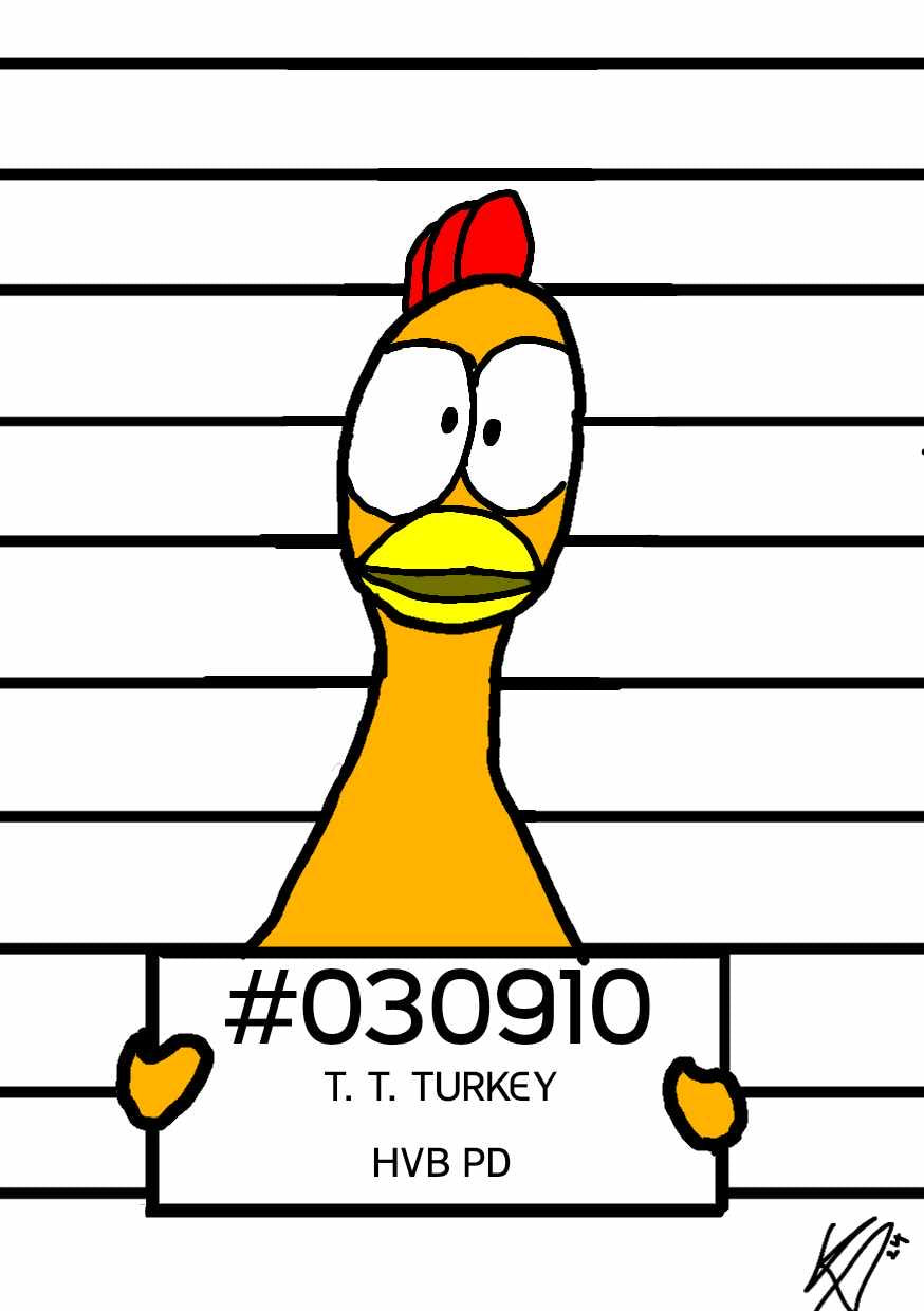 "Get ready to run with laughter when you lay eyes on Chicken Run! This quirky artwork by art student Kiarah features a chicken's mug shot and begs the question: what did this mischievous chicken do? A fun and playful addition to any art collection. What's your guess?"