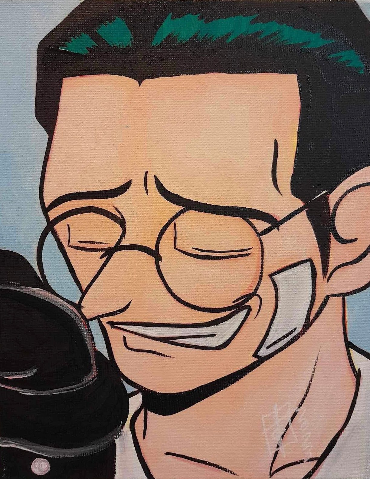 Transform your space into a playful paradise with this hand-painted Kuro fan art from One Piece. Expertly created by Carla Thornton, this unique piece will add a touch of quirkiness and fun to any room.