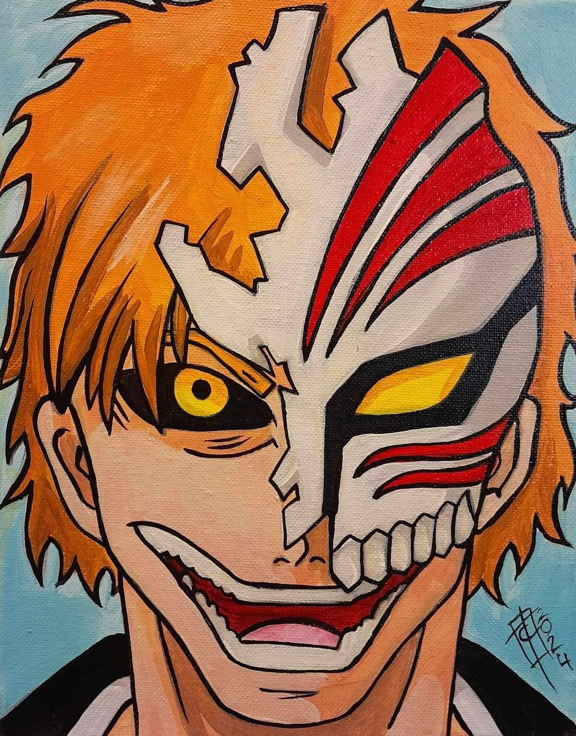 Channel your inner otaku with this quirky and unique fan art painting of Ichigo from Bleach, hand painted by the talented Carla Thornton. A must-have for any fan of the series, this one-of-a-kind piece is sure to bring a touch of fun and personality to any space. (Limited supply - don't miss out!)