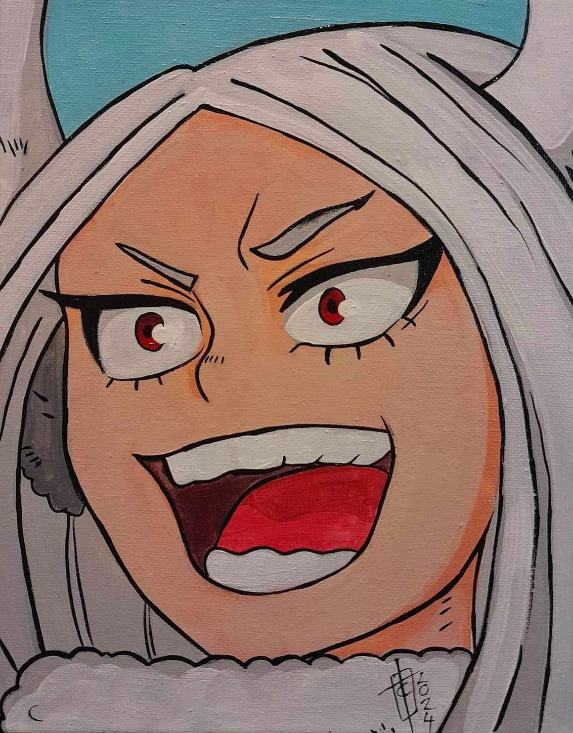 Expertly hand painted by artist Carla Thornton, this Fan art Painting depicts My Hero Academia's fierce and powerful hero, Mirko. With stunning attention to detail and vibrant colors, this painting is a must-have for any fan of the show. Add it to your collection today and bring Mirko into your home.
