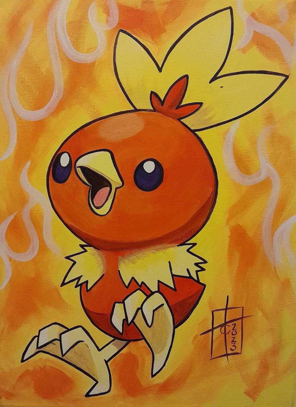 Expertly hand painted by artist Carla Thornton, this Torchic fan art painting captures the beloved Pokémon in stunning detail. Add a touch of nostalgia to your room or office with this unique piece. Available now.
