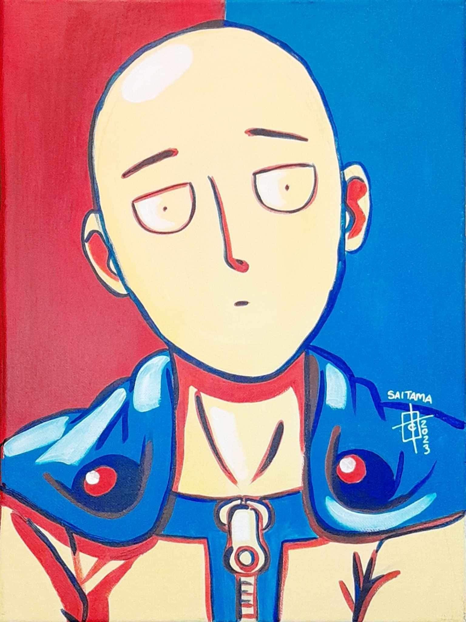 This stunning hand painted fan art piece depicts Saitama from One Punch Man with precision and skill. Carla Thornton, an experienced artist, brings this beloved character to life in vibrant colors and intricate details. A must-have for any fan or collector of anime art.