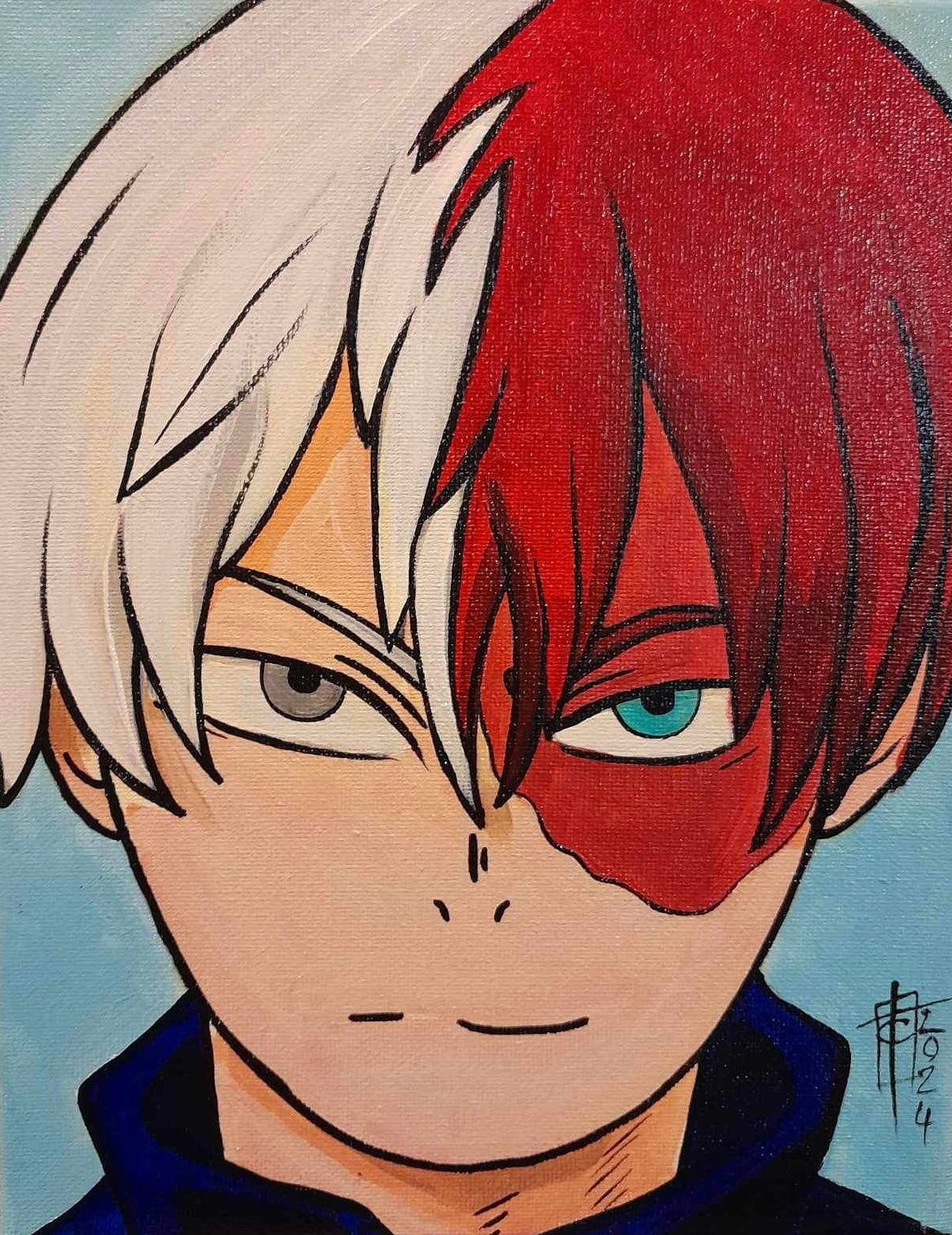 Add a touch of My Hero Academia to your wall with this Todoroki fan art painting, hand painted by Carla Thornton. Embrace your inner hero and make your home stand out with this unique and playful piece. (No quirk required!)